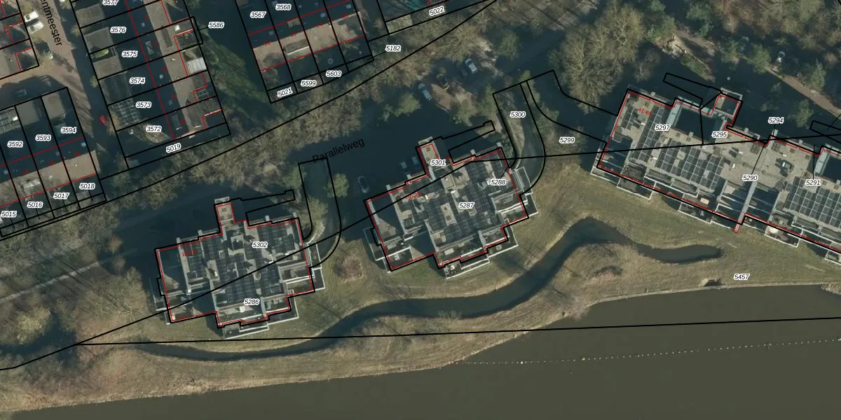 Parallelweg 33 is gelegen op kadastraal perceel OST00D5287. Deze kadastrale aanduiding is uniek en wordt gebruikt door het Kadaster om eigendomsrechten en andere zakelijke rechten vast te leggen. Het perceel maakt onderdeel uit van de kadastrale gemeente Oirschot.