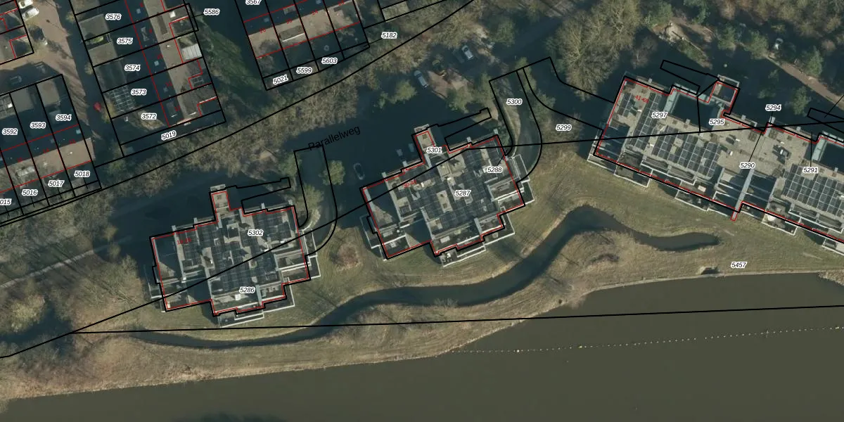 Parallelweg 36 is gelegen op kadastraal perceel OST00D5287. Deze kadastrale aanduiding is uniek en wordt gebruikt door het Kadaster om eigendomsrechten en andere zakelijke rechten vast te leggen. Het perceel maakt onderdeel uit van de kadastrale gemeente Oirschot.