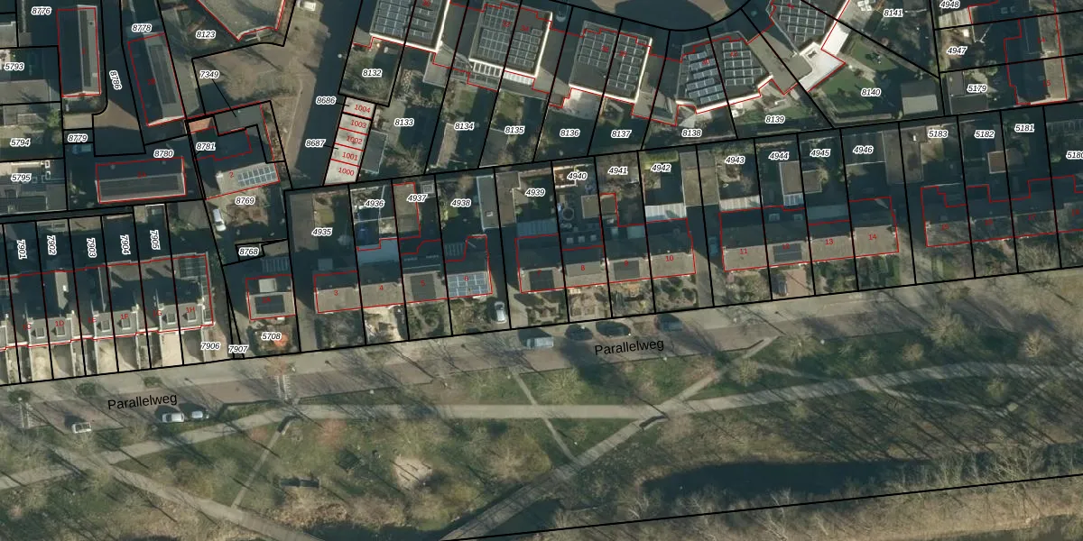 Parallelweg 7 is gelegen op kadastraal perceel OST00F4939. Deze kadastrale aanduiding is uniek en wordt gebruikt door het Kadaster om eigendomsrechten en andere zakelijke rechten vast te leggen. Het perceel maakt onderdeel uit van de kadastrale gemeente Oirschot.