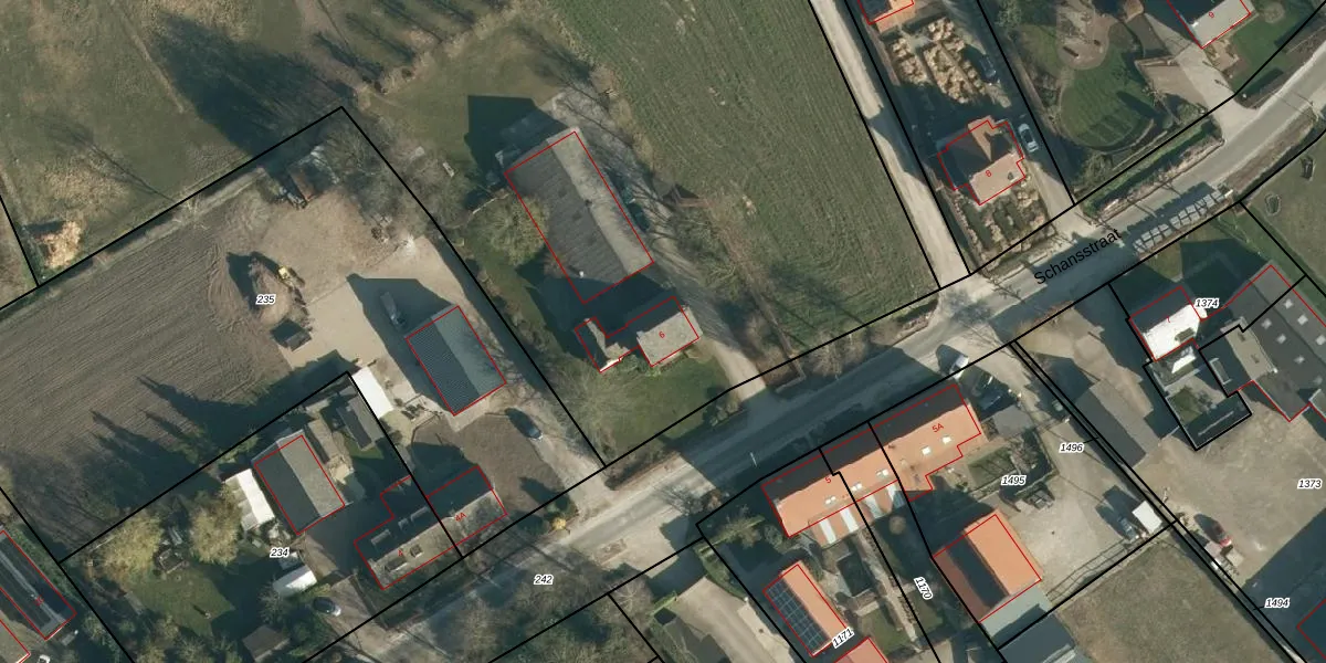 Het perceel waarop Schansstraat 6 staat heeft een oppervlakte van 1,0 ha. Dit is een zeer groot perceel. De perceeloppervlakte wordt geregistreerd door het Kadaster. Gedetailleerde informatie over de maten van dit perceel kunt u vinden in het rapport Kadastrale kaart met maatvoering van Schansstraat 6.