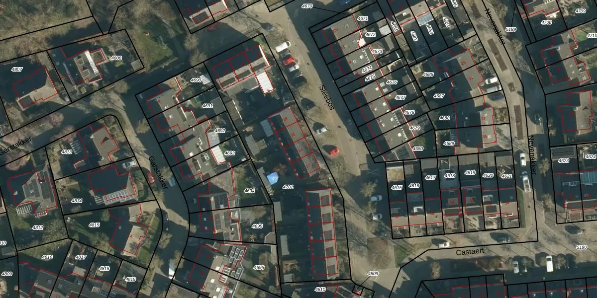 Sleebos 14 is gelegen op kadastraal perceel OST00D4701. Deze kadastrale aanduiding is uniek en wordt gebruikt door het Kadaster om eigendomsrechten en andere zakelijke rechten vast te leggen. Het perceel maakt onderdeel uit van de kadastrale gemeente Oirschot.