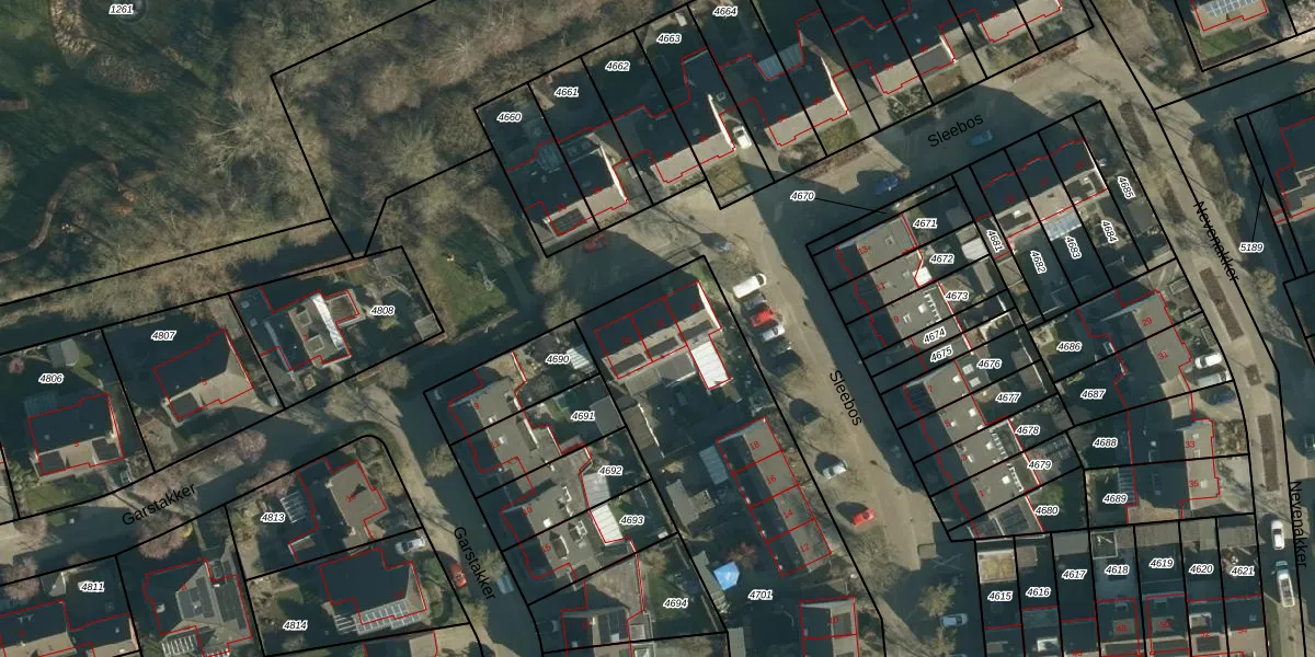 Het perceel waarop Sleebos 22 staat heeft een oppervlakte van 1899 m². Dit is een zeer groot perceel. De perceeloppervlakte wordt geregistreerd door het Kadaster. Gedetailleerde informatie over de maten van dit perceel kunt u vinden in het rapport Kadastrale kaart met maatvoering van Sleebos 22.
