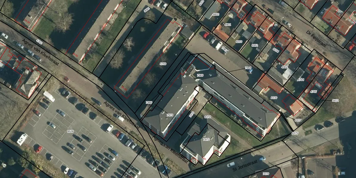 Het perceel waarop St Jorisstraat 76 staat heeft een oppervlakte van 1626 m². Dit is een zeer groot perceel. De perceeloppervlakte wordt geregistreerd door het Kadaster. Gedetailleerde informatie over de maten van dit perceel kunt u vinden in het rapport Kadastrale kaart met maatvoering van St Jorisstraat 76.