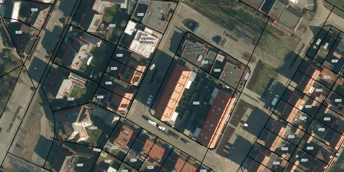 Tamboer 8 is gelegen op kadastraal perceel OST00F8391. Deze kadastrale aanduiding is uniek en wordt gebruikt door het Kadaster om eigendomsrechten en andere zakelijke rechten vast te leggen. Het perceel maakt onderdeel uit van de kadastrale gemeente Oirschot.