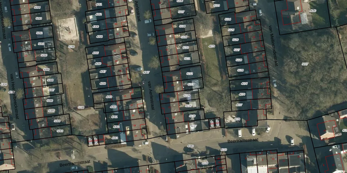 van Aerlestraat 25 is gelegen op kadastraal perceel OST00D5113. Deze kadastrale aanduiding is uniek en wordt gebruikt door het Kadaster om eigendomsrechten en andere zakelijke rechten vast te leggen. Het perceel maakt onderdeel uit van de kadastrale gemeente Oirschot.
