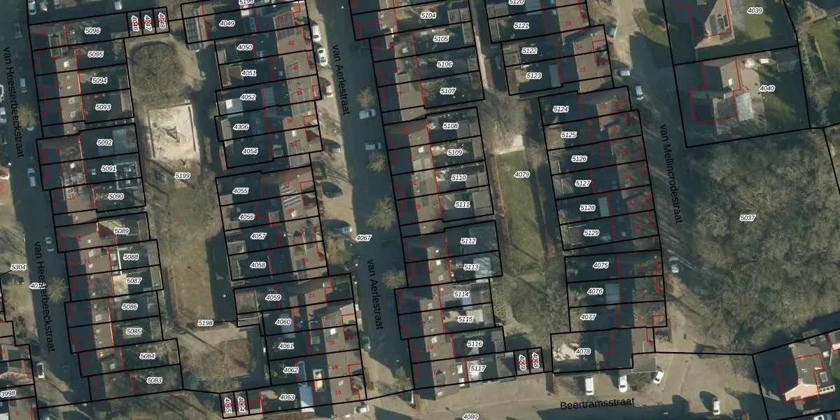 van Aerlestraat 29 is gelegen op kadastraal perceel OST00D5111. Deze kadastrale aanduiding is uniek en wordt gebruikt door het Kadaster om eigendomsrechten en andere zakelijke rechten vast te leggen. Het perceel maakt onderdeel uit van de kadastrale gemeente Oirschot.