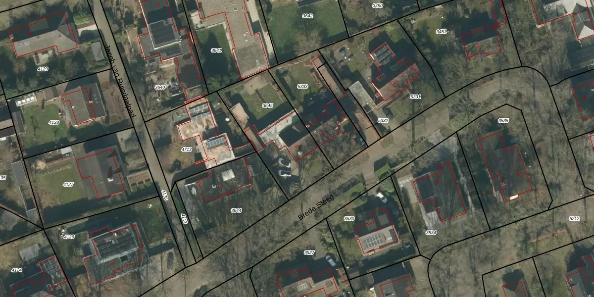 Het perceel waarop Brede Steeg 33 staat heeft een oppervlakte van 799 m². Dit is een groot perceel. De perceeloppervlakte wordt geregistreerd door het Kadaster. Gedetailleerde informatie over de maten van dit perceel kunt u vinden in het rapport Kadastrale kaart met maatvoering van Brede Steeg 33.
