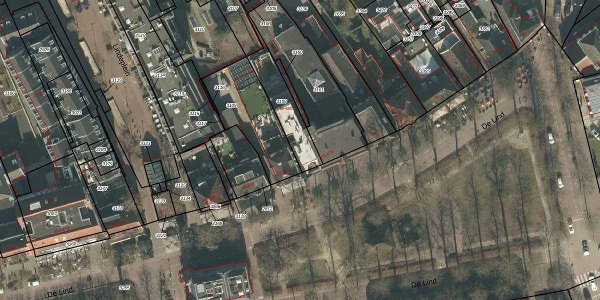 Het perceel waarop De Lind 65 staat heeft een oppervlakte van 338 m². Dit is een groot perceel. De perceeloppervlakte wordt geregistreerd door het Kadaster. Gedetailleerde informatie over de maten van dit perceel kunt u vinden in het rapport Kadastrale kaart met maatvoering van De Lind 65.