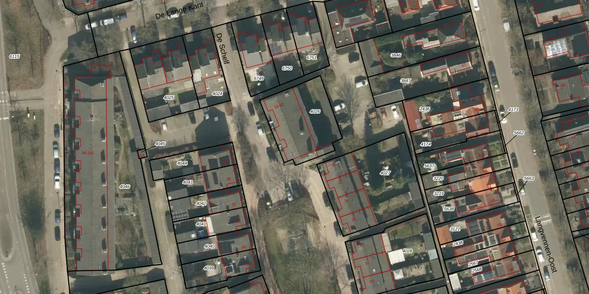 Het perceel waarop De Schelf 30 staat heeft een oppervlakte van 533 m². Dit is een groot perceel. De perceeloppervlakte wordt geregistreerd door het Kadaster. Gedetailleerde informatie over de maten van dit perceel kunt u vinden in het rapport Kadastrale kaart met maatvoering van De Schelf 30.