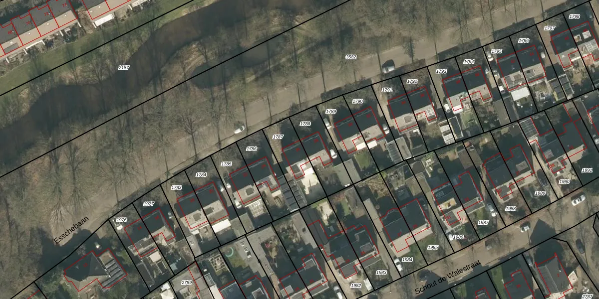 Esschebaan 26 is gelegen op kadastraal perceel OTW01B1787. Deze kadastrale aanduiding is uniek en wordt gebruikt door het Kadaster om eigendomsrechten en andere zakelijke rechten vast te leggen. Het perceel maakt onderdeel uit van de kadastrale gemeente Oisterwijk.