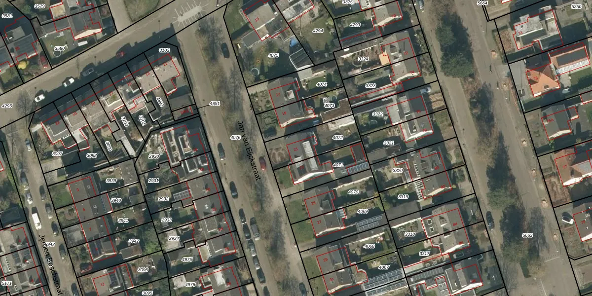 Het perceel waarop Jan van Eijckstraat 21 staat heeft een oppervlakte van 307 m². Dit is een groot perceel. De perceeloppervlakte wordt geregistreerd door het Kadaster. Gedetailleerde informatie over de maten van dit perceel kunt u vinden in het rapport Kadastrale kaart met maatvoering van Jan van Eijckstraat 21.