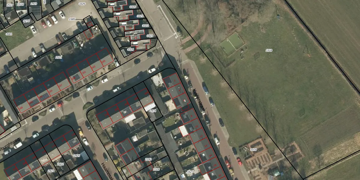Het perceel waarop Kuiperstraat 4 staat heeft een oppervlakte van 1820 m². Dit is een zeer groot perceel. De perceeloppervlakte wordt geregistreerd door het Kadaster. Gedetailleerde informatie over de maten van dit perceel kunt u vinden in het rapport Kadastrale kaart met maatvoering van Kuiperstraat 4.