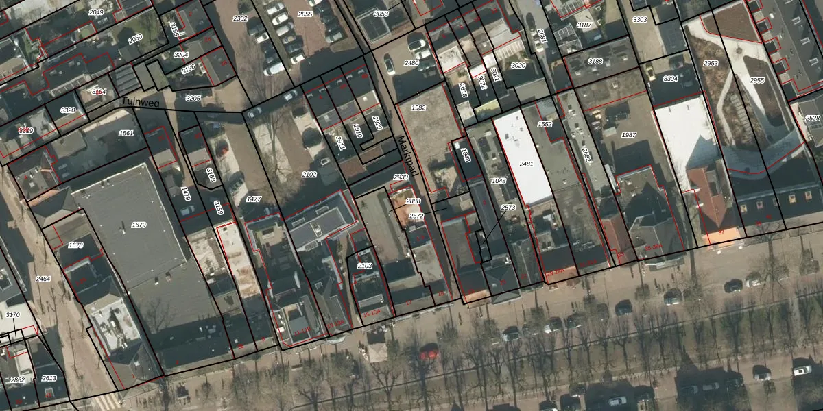 Het perceel waarop Marktpad 3 staat heeft een oppervlakte van 413 m². Dit is een groot perceel. De perceeloppervlakte wordt geregistreerd door het Kadaster. Gedetailleerde informatie over de maten van dit perceel kunt u vinden in het rapport Kadastrale kaart met maatvoering van Marktpad 3.