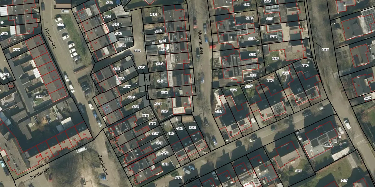 Het perceel waarop Molenacker 21 staat heeft een oppervlakte van 142 m². Dit is een middelgroot perceel. De perceeloppervlakte wordt geregistreerd door het Kadaster. Gedetailleerde informatie over de maten van dit perceel kunt u vinden in het rapport Kadastrale kaart met maatvoering van Molenacker 21.