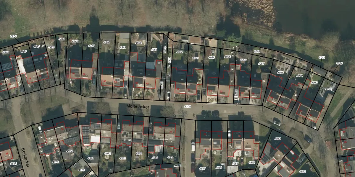 Het perceel waarop Molenacker 58 staat heeft een oppervlakte van 303 m². Dit is een groot perceel. De perceeloppervlakte wordt geregistreerd door het Kadaster. Gedetailleerde informatie over de maten van dit perceel kunt u vinden in het rapport Kadastrale kaart met maatvoering van Molenacker 58.