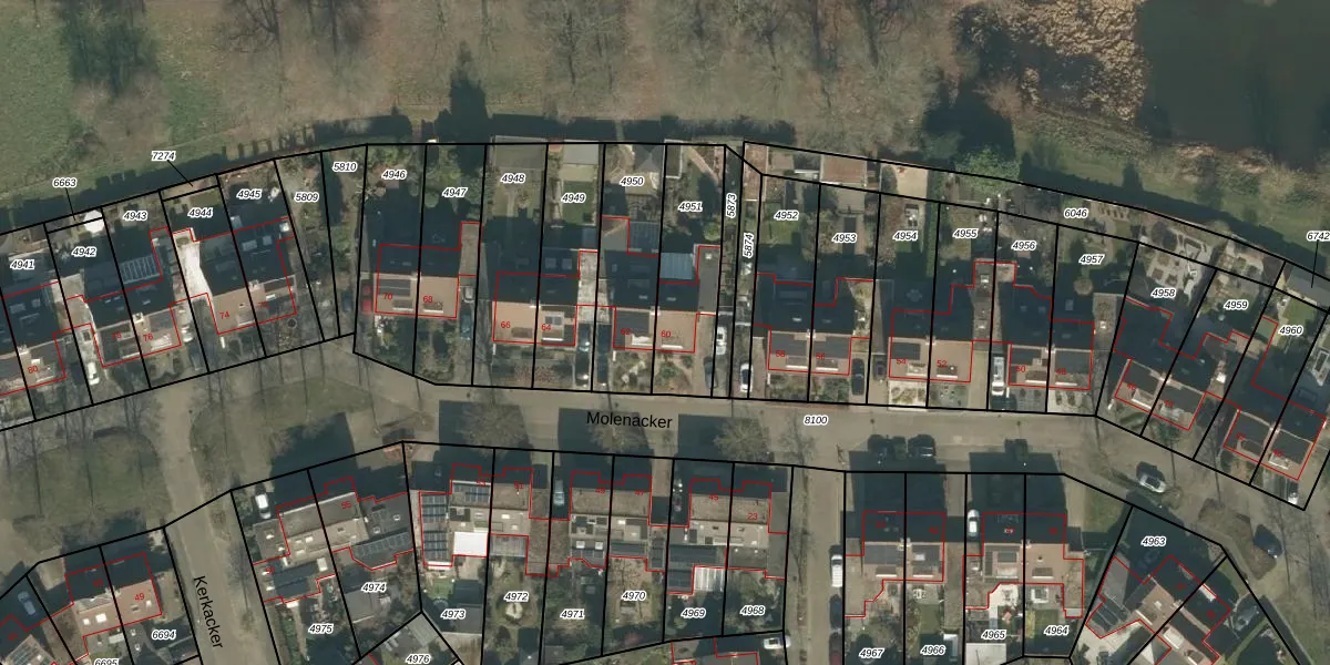 Gebruik de zoekbalk of klik op een perceel voor informatie over de adressen binnen dit perceel.