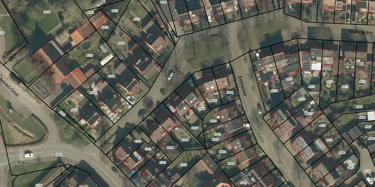 Het perceel waarop Molenacker 61 staat heeft een oppervlakte van 196 m². Dit is een middelgroot perceel. De perceeloppervlakte wordt geregistreerd door het Kadaster. Gedetailleerde informatie over de maten van dit perceel kunt u vinden in het rapport Kadastrale kaart met maatvoering van Molenacker 61.
