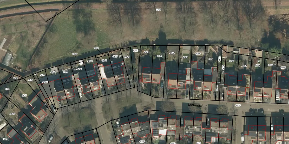 Het perceel waarop Molenacker 70 staat heeft een oppervlakte van 296 m². Dit is een middelgroot perceel. De perceeloppervlakte wordt geregistreerd door het Kadaster. Gedetailleerde informatie over de maten van dit perceel kunt u vinden in het rapport Kadastrale kaart met maatvoering van Molenacker 70.
