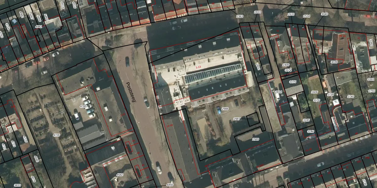 Het perceel waarop Poststeeg 11 staat heeft een oppervlakte van 2632 m². Dit is een zeer groot perceel. De perceeloppervlakte wordt geregistreerd door het Kadaster. Gedetailleerde informatie over de maten van dit perceel kunt u vinden in het rapport Kadastrale kaart met maatvoering van Poststeeg 11.