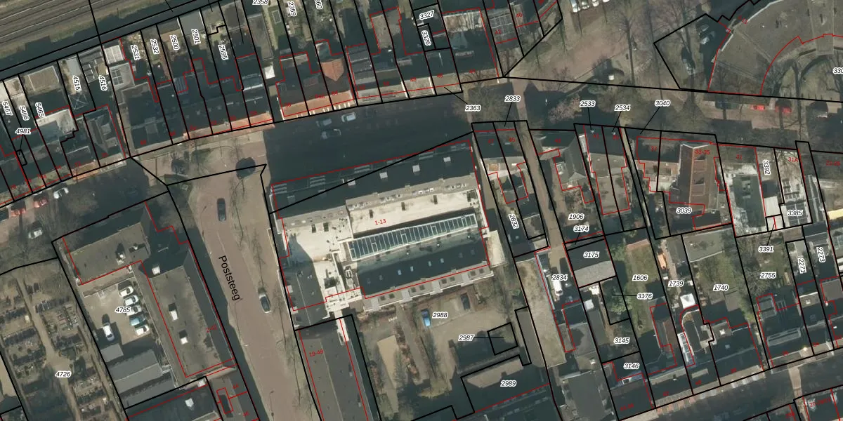 Het perceel waarop Poststeeg 3-C staat heeft een oppervlakte van 2632 m². Dit is een zeer groot perceel. De perceeloppervlakte wordt geregistreerd door het Kadaster. Gedetailleerde informatie over de maten van dit perceel kunt u vinden in het rapport Kadastrale kaart met maatvoering van Poststeeg 3-C.