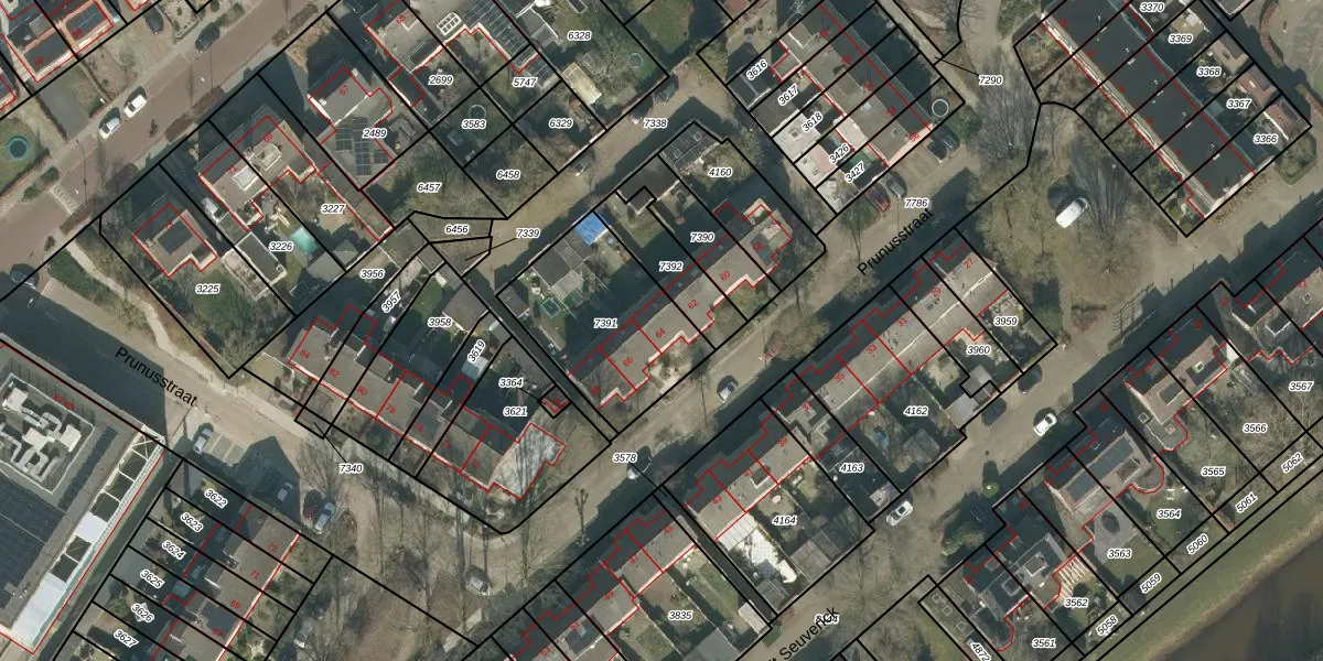 Prunusstraat 64 is gelegen op kadastraal perceel OTW01A7391. Deze kadastrale aanduiding is uniek en wordt gebruikt door het Kadaster om eigendomsrechten en andere zakelijke rechten vast te leggen. Het perceel maakt onderdeel uit van de kadastrale gemeente Oisterwijk.