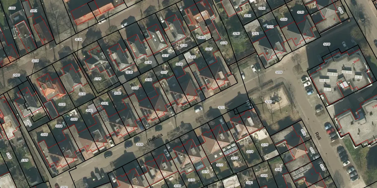 Het perceel waarop Renata 39 staat heeft een oppervlakte van 245 m². Dit is een middelgroot perceel. De perceeloppervlakte wordt geregistreerd door het Kadaster. Gedetailleerde informatie over de maten van dit perceel kunt u vinden in het rapport Kadastrale kaart met maatvoering van Renata 39.