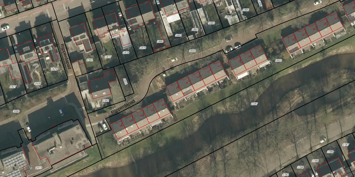 Het perceel waarop Rijpperdapad 66 staat heeft een oppervlakte van 5060 m². Dit is een zeer groot perceel. De perceeloppervlakte wordt geregistreerd door het Kadaster. Gedetailleerde informatie over de maten van dit perceel kunt u vinden in het rapport Kadastrale kaart met maatvoering van Rijpperdapad 66.