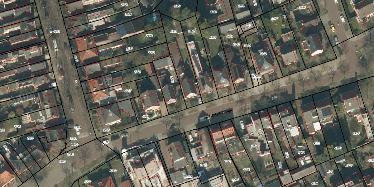 Gebruik de zoekbalk of klik op een perceel voor informatie over de adressen binnen dit perceel.