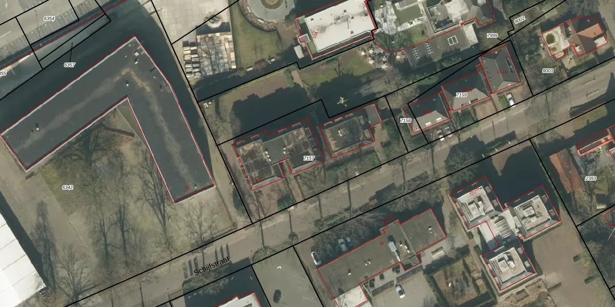 Schijfstraat 25 is gelegen op kadastraal perceel OTW01A7157. Deze kadastrale aanduiding is uniek en wordt gebruikt door het Kadaster om eigendomsrechten en andere zakelijke rechten vast te leggen. Het perceel maakt onderdeel uit van de kadastrale gemeente Oisterwijk.