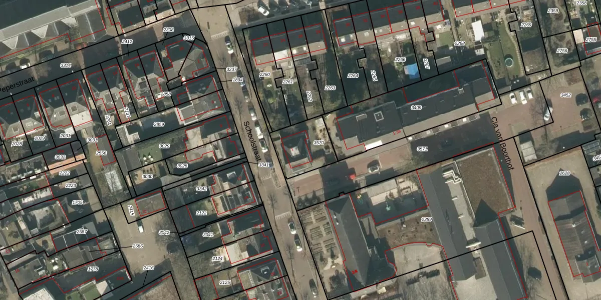 Schoolstraat 1 is gelegen op kadastraal perceel OTW01B3570. Deze kadastrale aanduiding is uniek en wordt gebruikt door het Kadaster om eigendomsrechten en andere zakelijke rechten vast te leggen. Het perceel maakt onderdeel uit van de kadastrale gemeente Oisterwijk.
