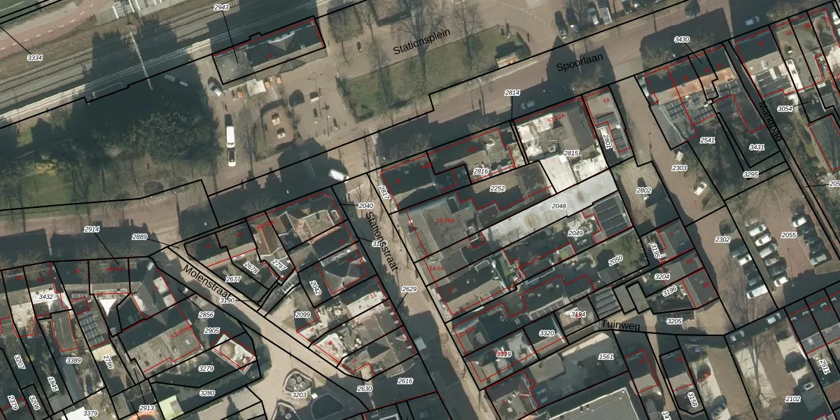 Het perceel waarop Stationsstraat 26-A staat heeft een oppervlakte van 425 m². Dit is een groot perceel. De perceeloppervlakte wordt geregistreerd door het Kadaster. Gedetailleerde informatie over de maten van dit perceel kunt u vinden in het rapport Kadastrale kaart met maatvoering van Stationsstraat 26-A.