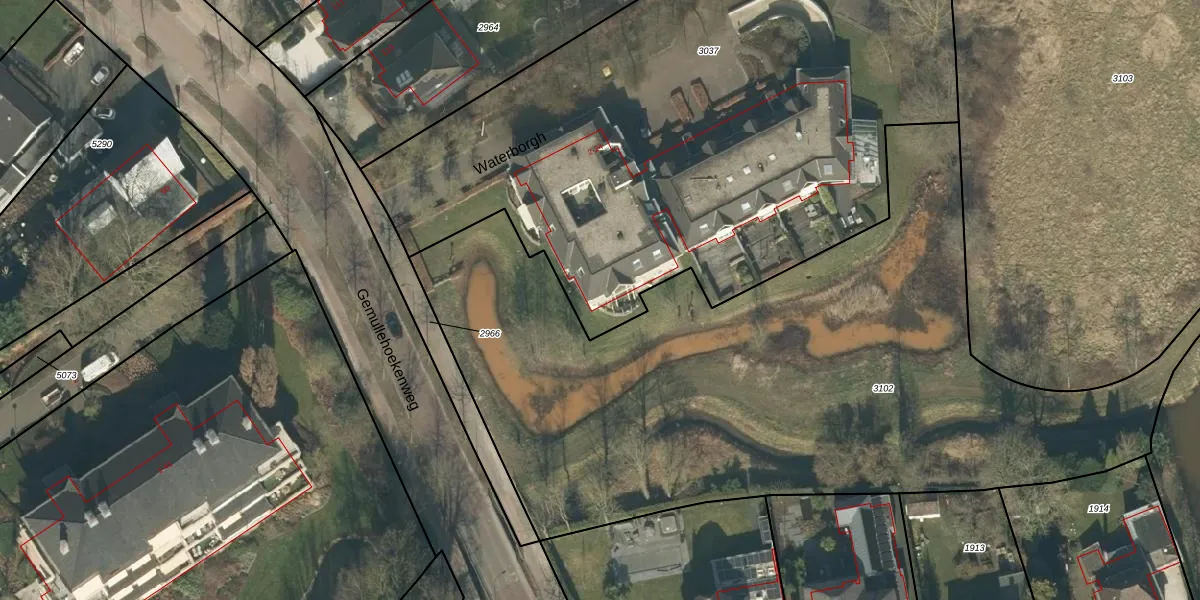 Het perceel waarop Waterborgh 2 staat heeft een oppervlakte van 3995 m². Dit is een zeer groot perceel. De perceeloppervlakte wordt geregistreerd door het Kadaster. Gedetailleerde informatie over de maten van dit perceel kunt u vinden in het rapport Kadastrale kaart met maatvoering van Waterborgh 2.