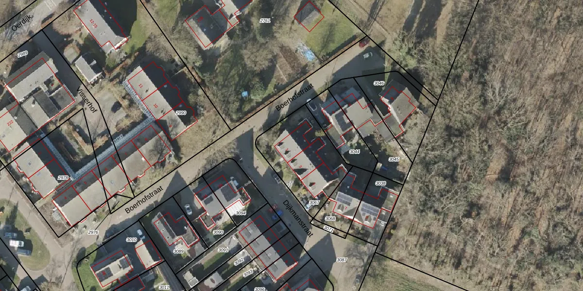 Het perceel waarop Dijkmanstraat 1 staat heeft een oppervlakte van 655 m². Dit is een groot perceel. De perceeloppervlakte wordt geregistreerd door het Kadaster. Gedetailleerde informatie over de maten van dit perceel kunt u vinden in het rapport Kadastrale kaart met maatvoering van Dijkmanstraat 1.