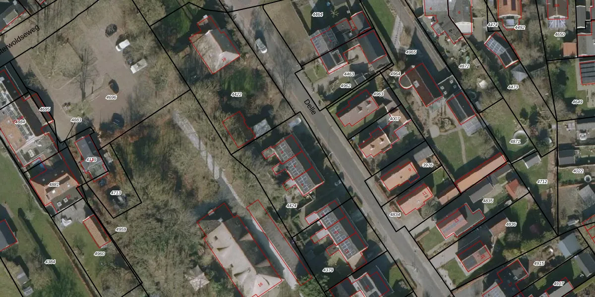 Het perceel waarop Delle 2 staat heeft een oppervlakte van 836 m². Dit is een groot perceel. De perceeloppervlakte wordt geregistreerd door het Kadaster. Gedetailleerde informatie over de maten van dit perceel kunt u vinden in het rapport Kadastrale kaart met maatvoering van Delle 2.