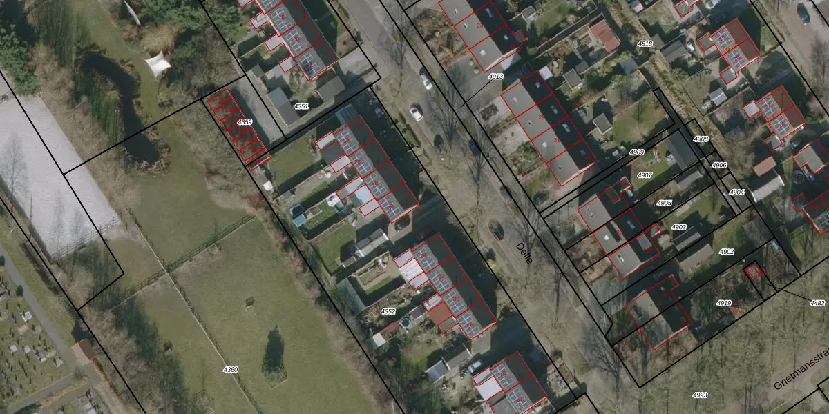 Het perceel waarop Delle 30 staat heeft een oppervlakte van 3302 m². Dit is een zeer groot perceel. De perceeloppervlakte wordt geregistreerd door het Kadaster. Gedetailleerde informatie over de maten van dit perceel kunt u vinden in het rapport Kadastrale kaart met maatvoering van Delle 30.