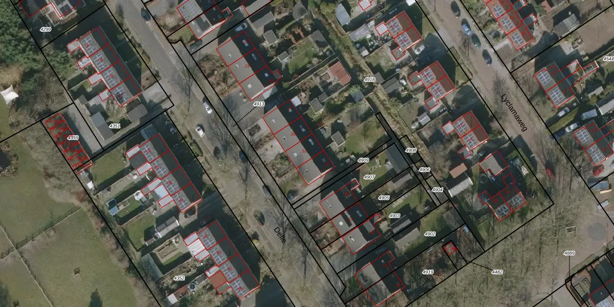 Het perceel waarop Delle 31 staat heeft een oppervlakte van 5680 m². Dit is een zeer groot perceel. De perceeloppervlakte wordt geregistreerd door het Kadaster. Gedetailleerde informatie over de maten van dit perceel kunt u vinden in het rapport Kadastrale kaart met maatvoering van Delle 31.