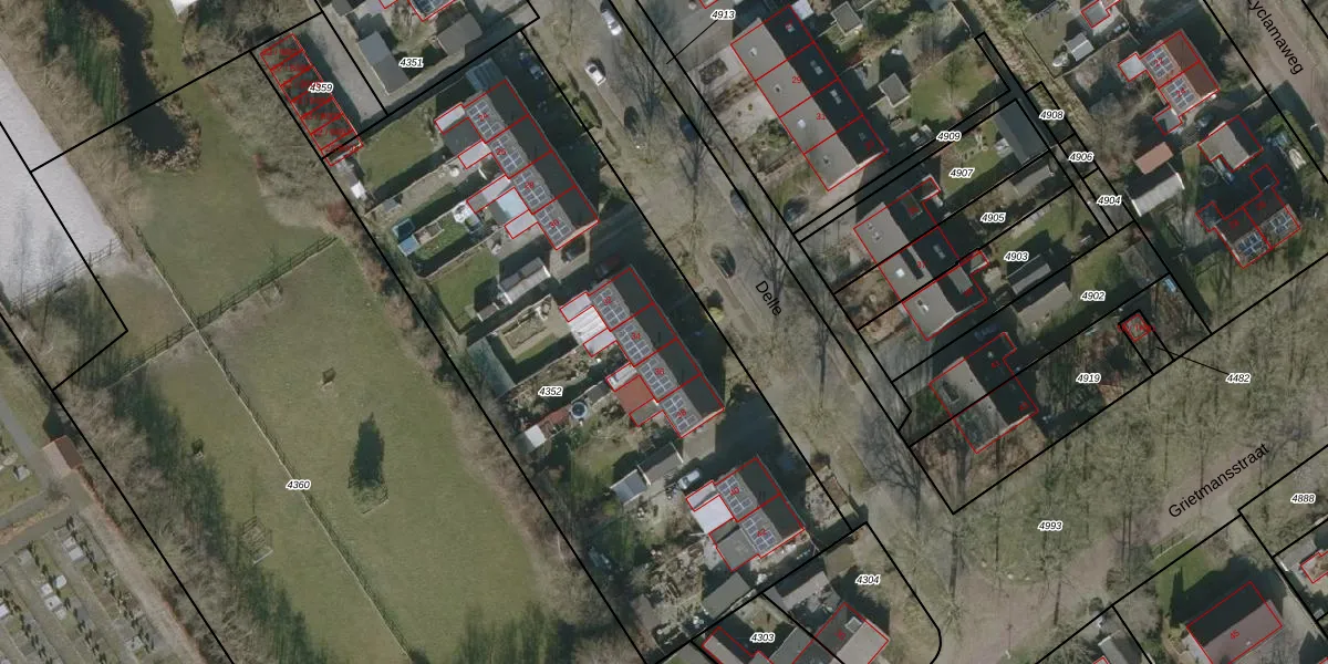 Het perceel waarop Delle 34 staat heeft een oppervlakte van 3302 m². Dit is een zeer groot perceel. De perceeloppervlakte wordt geregistreerd door het Kadaster. Gedetailleerde informatie over de maten van dit perceel kunt u vinden in het rapport Kadastrale kaart met maatvoering van Delle 34.