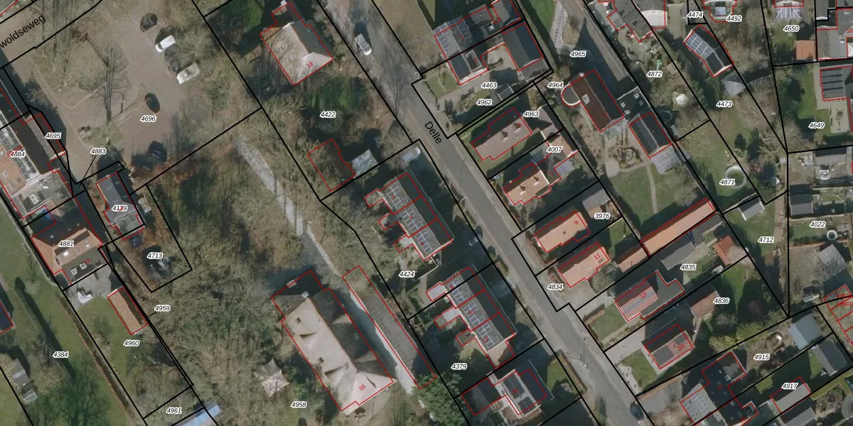 Het perceel waarop Delle 4 staat heeft een oppervlakte van 836 m². Dit is een groot perceel. De perceeloppervlakte wordt geregistreerd door het Kadaster. Gedetailleerde informatie over de maten van dit perceel kunt u vinden in het rapport Kadastrale kaart met maatvoering van Delle 4.