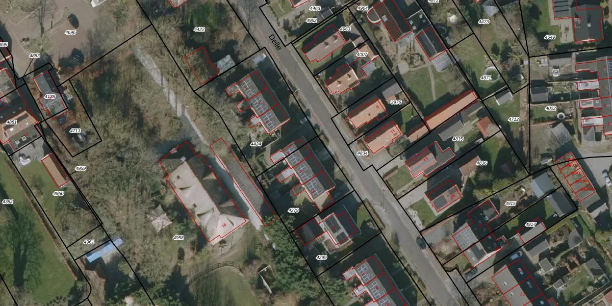 Het perceel waarop Delle 8 staat heeft een oppervlakte van 490 m². Dit is een groot perceel. De perceeloppervlakte wordt geregistreerd door het Kadaster. Gedetailleerde informatie over de maten van dit perceel kunt u vinden in het rapport Kadastrale kaart met maatvoering van Delle 8.