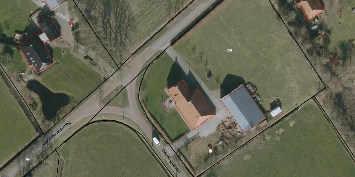 Oosterwoldseweg 76 is gelegen op kadastraal perceel ODB03E931. Deze kadastrale aanduiding is uniek en wordt gebruikt door het Kadaster om eigendomsrechten en andere zakelijke rechten vast te leggen. Het perceel maakt onderdeel uit van de kadastrale gemeente Oldeberkoop.