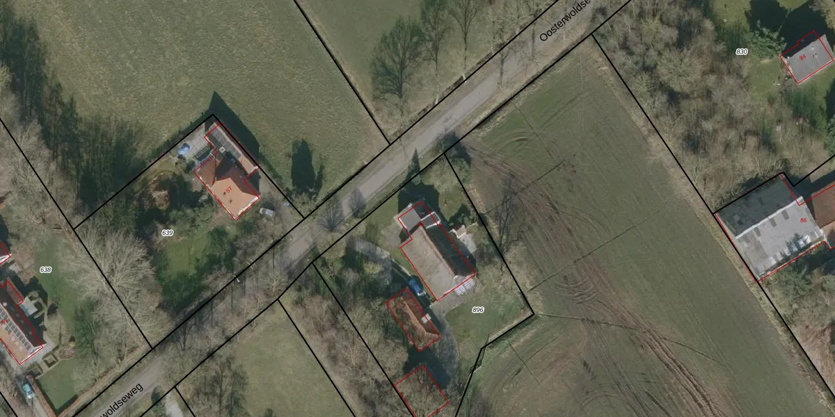 Oosterwoldseweg 82 is gelegen op kadastraal perceel ODB03E896. Deze kadastrale aanduiding is uniek en wordt gebruikt door het Kadaster om eigendomsrechten en andere zakelijke rechten vast te leggen. Het perceel maakt onderdeel uit van de kadastrale gemeente Oldeberkoop.