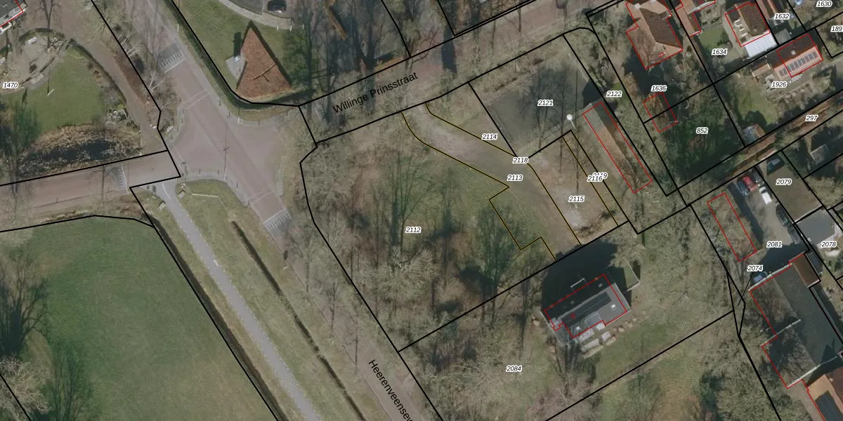 Het perceel waarop Willinge Prinsstraat 33 staat heeft een oppervlakte van 1890 m². Dit is een zeer groot perceel. De perceeloppervlakte wordt geregistreerd door het Kadaster. Gedetailleerde informatie over de maten van dit perceel kunt u vinden in het rapport Kadastrale kaart met maatvoering van Willinge Prinsstraat 33.