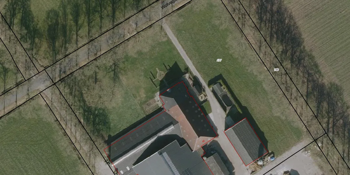 Wolvegasterweg 45 is gelegen op kadastraal perceel ODB03E177. Deze kadastrale aanduiding is uniek en wordt gebruikt door het Kadaster om eigendomsrechten en andere zakelijke rechten vast te leggen. Het perceel maakt onderdeel uit van de kadastrale gemeente Oldeberkoop.