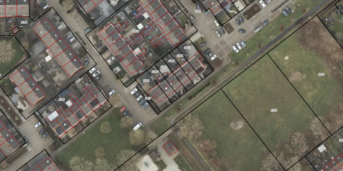 Het perceel waarop Begoniastraat 19 staat heeft een oppervlakte van 137 m². Dit is een middelgroot perceel. De perceeloppervlakte wordt geregistreerd door het Kadaster. Gedetailleerde informatie over de maten van dit perceel kunt u vinden in het rapport Kadastrale kaart met maatvoering van Begoniastraat 19.