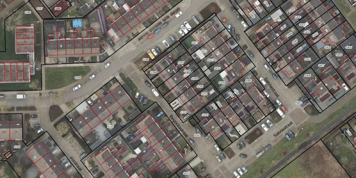 Gebruik de zoekbalk of klik op een perceel voor informatie over de adressen binnen dit perceel.