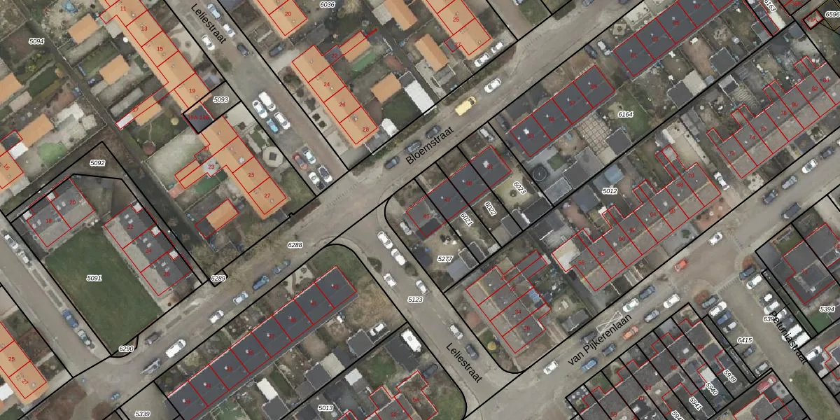 Gebruik de zoekbalk of klik op een perceel voor informatie over de adressen binnen dit perceel.
