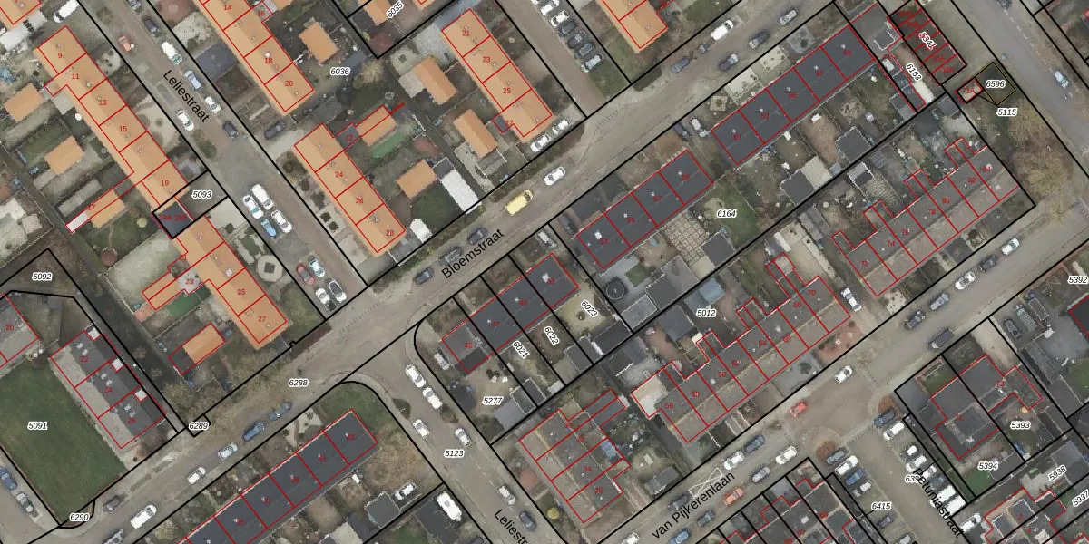 Gebruik de zoekbalk of klik op een perceel voor informatie over de adressen binnen dit perceel.