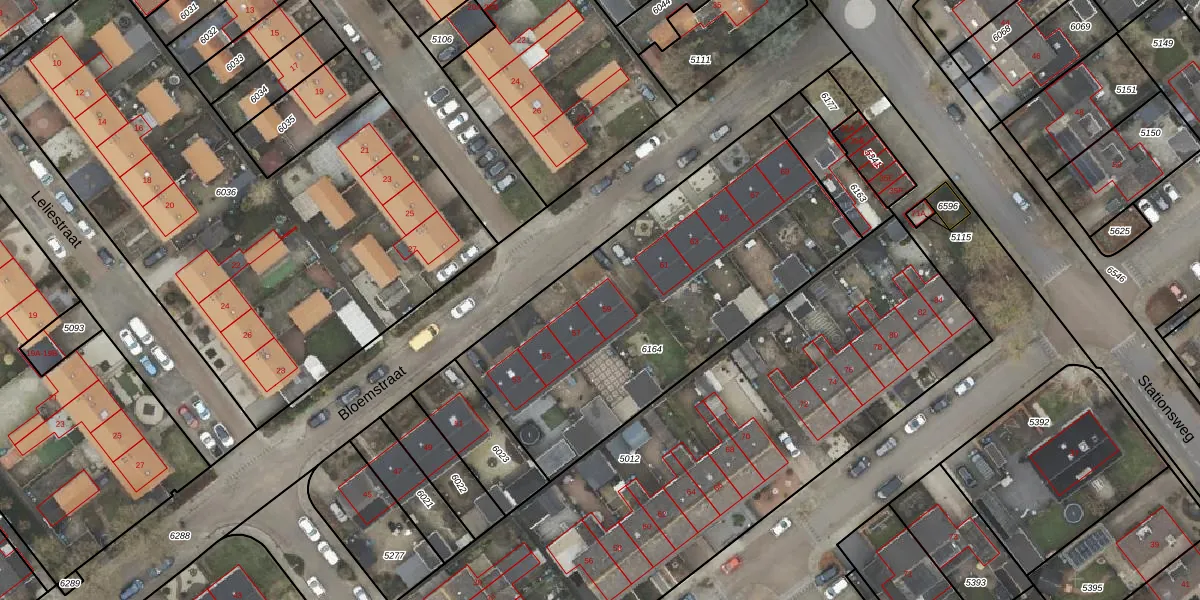 Het perceel waarop Bloemstraat 59 staat heeft een oppervlakte van 1700 m². Dit is een zeer groot perceel. De perceeloppervlakte wordt geregistreerd door het Kadaster. Gedetailleerde informatie over de maten van dit perceel kunt u vinden in het rapport Kadastrale kaart met maatvoering van Bloemstraat 59.