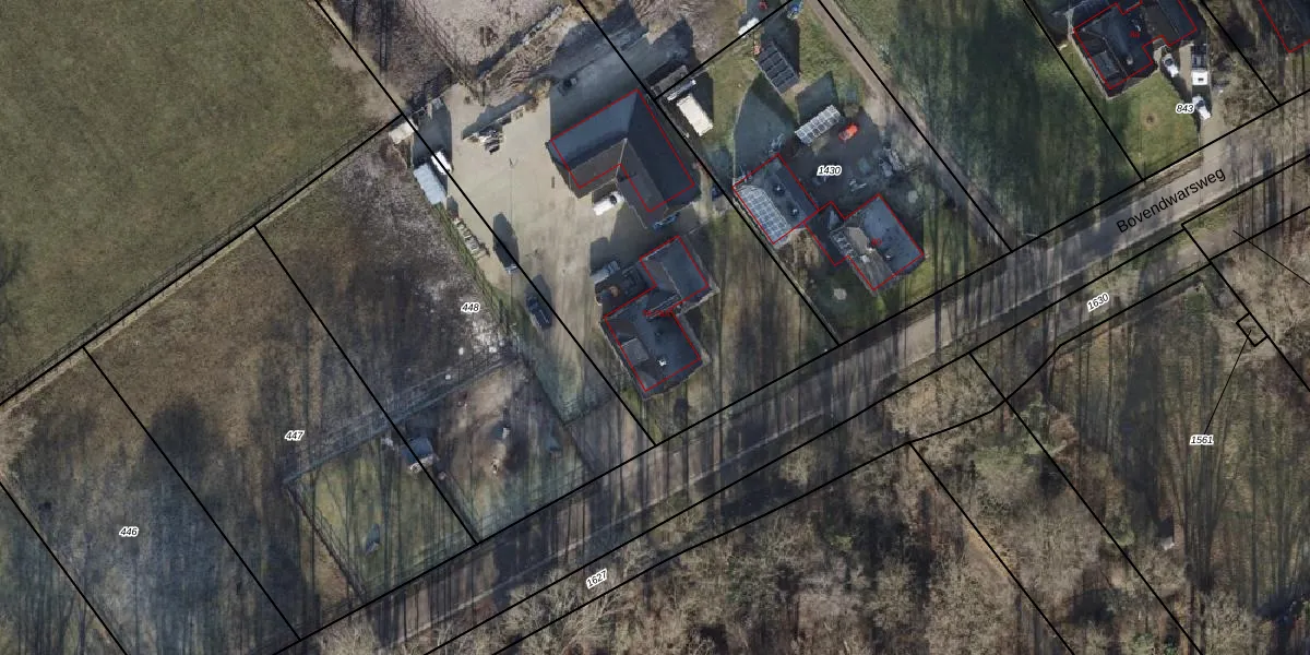 Het perceel waarop Bovendwarsweg 78 staat heeft een oppervlakte van 1,1 ha. Dit is een zeer groot perceel. De perceeloppervlakte wordt geregistreerd door het Kadaster. Gedetailleerde informatie over de maten van dit perceel kunt u vinden in het rapport Kadastrale kaart met maatvoering van Bovendwarsweg 78.