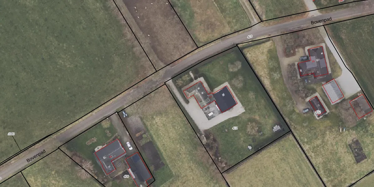 Bovenpad 17 is gelegen op kadastraal perceel ODB01AG411. Deze kadastrale aanduiding is uniek en wordt gebruikt door het Kadaster om eigendomsrechten en andere zakelijke rechten vast te leggen. Het perceel maakt onderdeel uit van de kadastrale gemeente Oldebroek.
